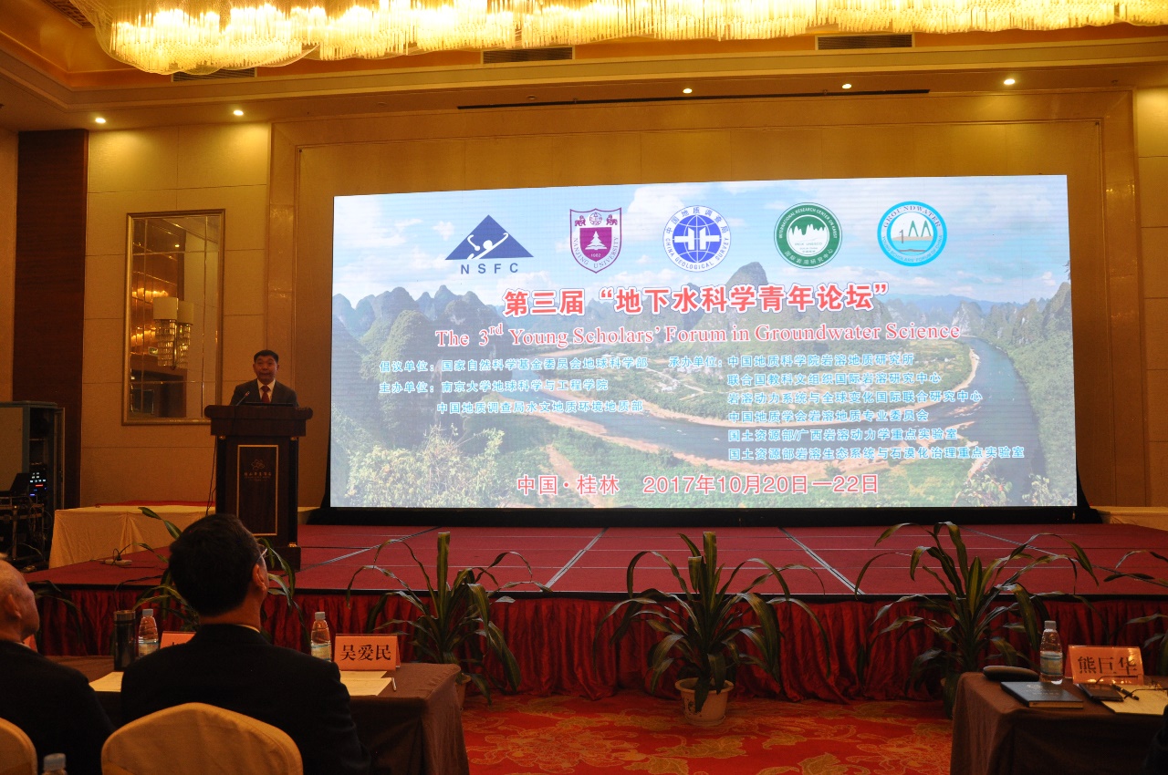 2017年10月21日~22日,由国家自然科学基金委员会地球科学部倡议,304永利集团官网入口和中国地质调查局水文地质环境地质部主办,中国地质调查局岩溶地质研究所承办的第三届“地下水科学青年论坛”在广西桂林顺利召开。本论坛旨在交流学术思想和科研经验,促进我国地下水科学青年学者的成长,提升我国地下水学科的蓬勃发展。