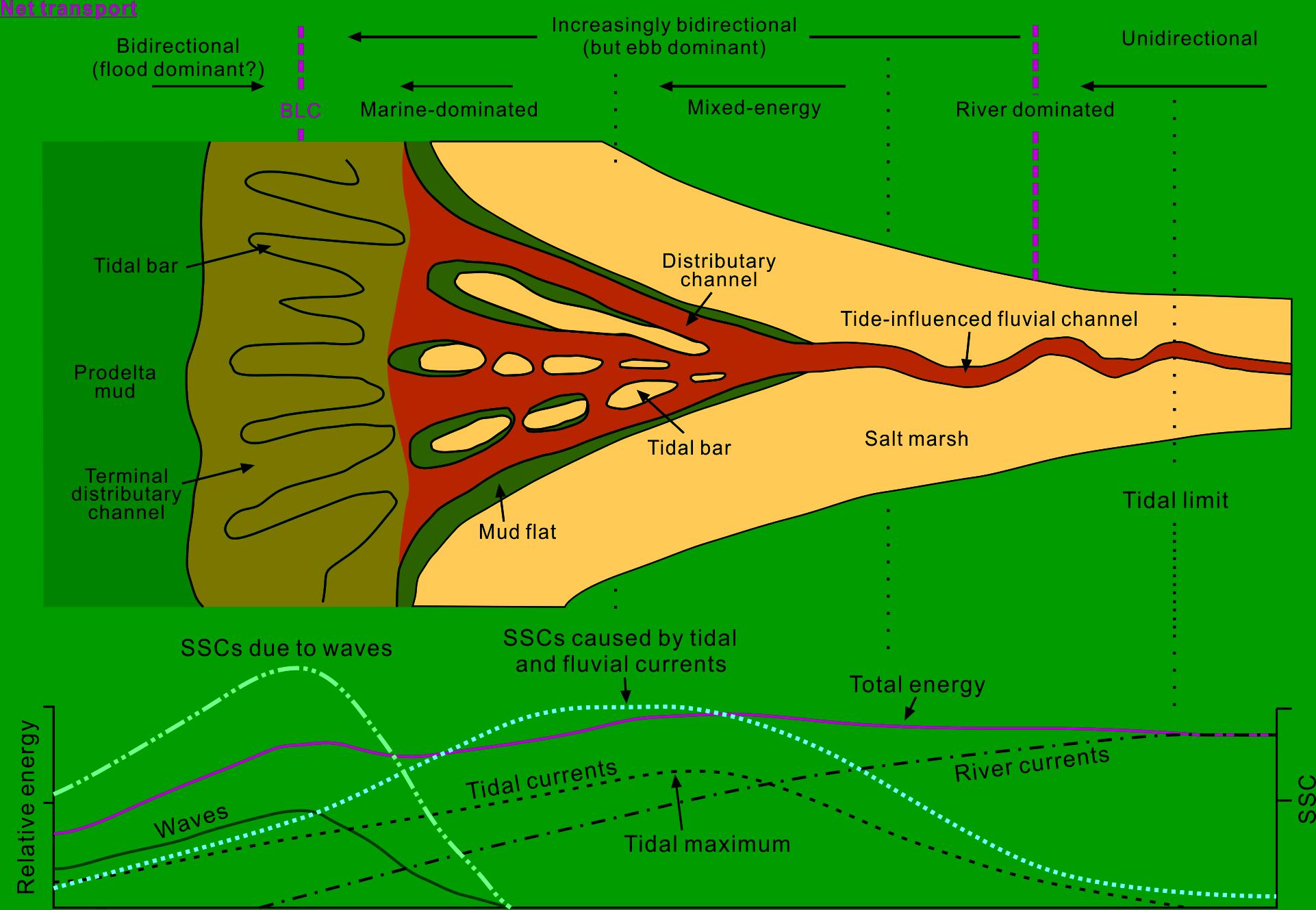 课题组最新学术论文《Facies and stratigraphic architecture of the late Pleistocene to early Holocene tide-dominated paleo-Changjiang (Yangtze River) delta》已在线发表于《GSA Bulletin》。论文通过对地层中广泛分布的泥质沉积物动力学机制分析,对晚第四纪长江下切河谷内距今19-8千年期间的海侵层序进行了系统研究,得出新认识:1)海侵层序内悬沙浓度>10g/L时形成的泥质沉积 (fluid mud) 广泛发育,包括潮控和浪控两种成因;2)利用fluid mud和砂质沉积物的组合特征,将海侵层序划分为河流、受潮流影响的河流、潮道、潮流砂坝和湾口泥质沉积五种沉积相类型;3)五种沉积相垂向上表现为三个向上变粗的准层序,但整体为一向上变细的沉积层序,平面上自陆向海沉积物粒度逐渐变细;4)这些特征表明距今12-8千年前,前人一直认为的长江河口湾环境并不存在,实际上为一海侵退积型潮控三角洲沉积环境,原因是海侵时期长江沉积物的供应量间歇性地大于或等于海平面的上升速率,从而为三角洲的发育提供前提条件。