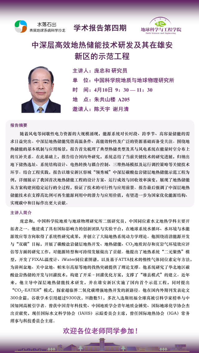 第四期 “水落石出” 表层地球系统科学沙龙——中深层高效地热储能技术研发及其在雄安新区的示范工程
