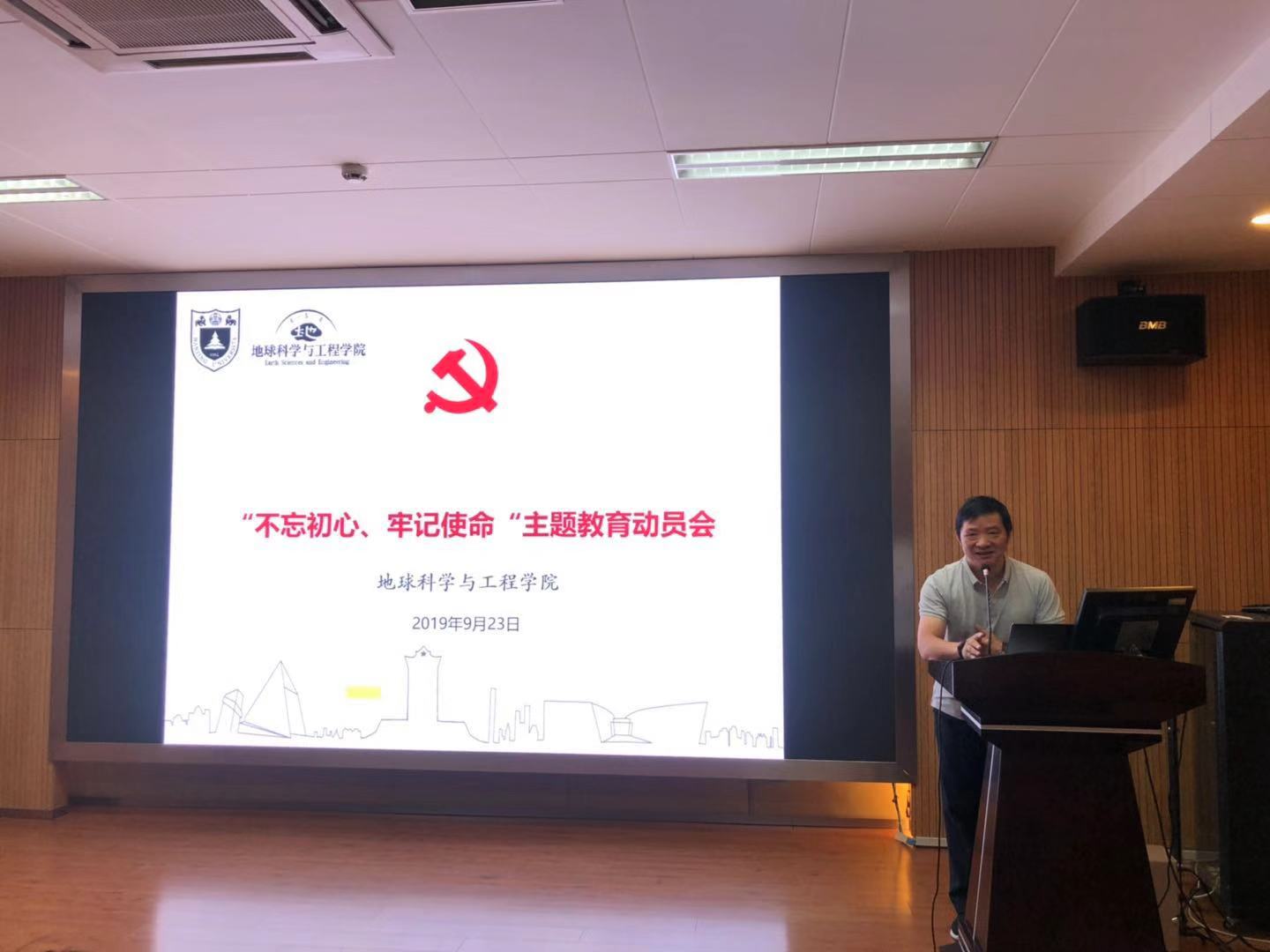 王唯还详细传达了学校开展主题教育的实施方案和工作要点,并对学院开展主题教育作了部署,提出了五点要求:一是要高度重视、精心组织、抓好落实,注重实际效果、解决实质问题;二是要把主题教育同推进“双一流建设”、建成“第一个南大”和学院中心工作相结合;三是要紧扣“立德树人”根本任务、落实“三全育人”;四是要将主题教育和“第一资源开发年”、“熔炉工程建设年”、“支部建设落实年”、师德师风建设、改善工作作风等正在做的事紧密结合;五是要勇于“自我革命”,提升自身素养,推进工作方式方法创新,要按照学校的统一部署,扎实完成“规定动作”,创新做好“自选动作”。最后提出三点希望,希望学院各支部、各教研室、全体党员要把主题教育落实体现在坚决贯彻上级党组织的决策部署的行动上;体现在履职尽责、做好本职工作的实效上;体现在党员、干部的日常言行表现上。