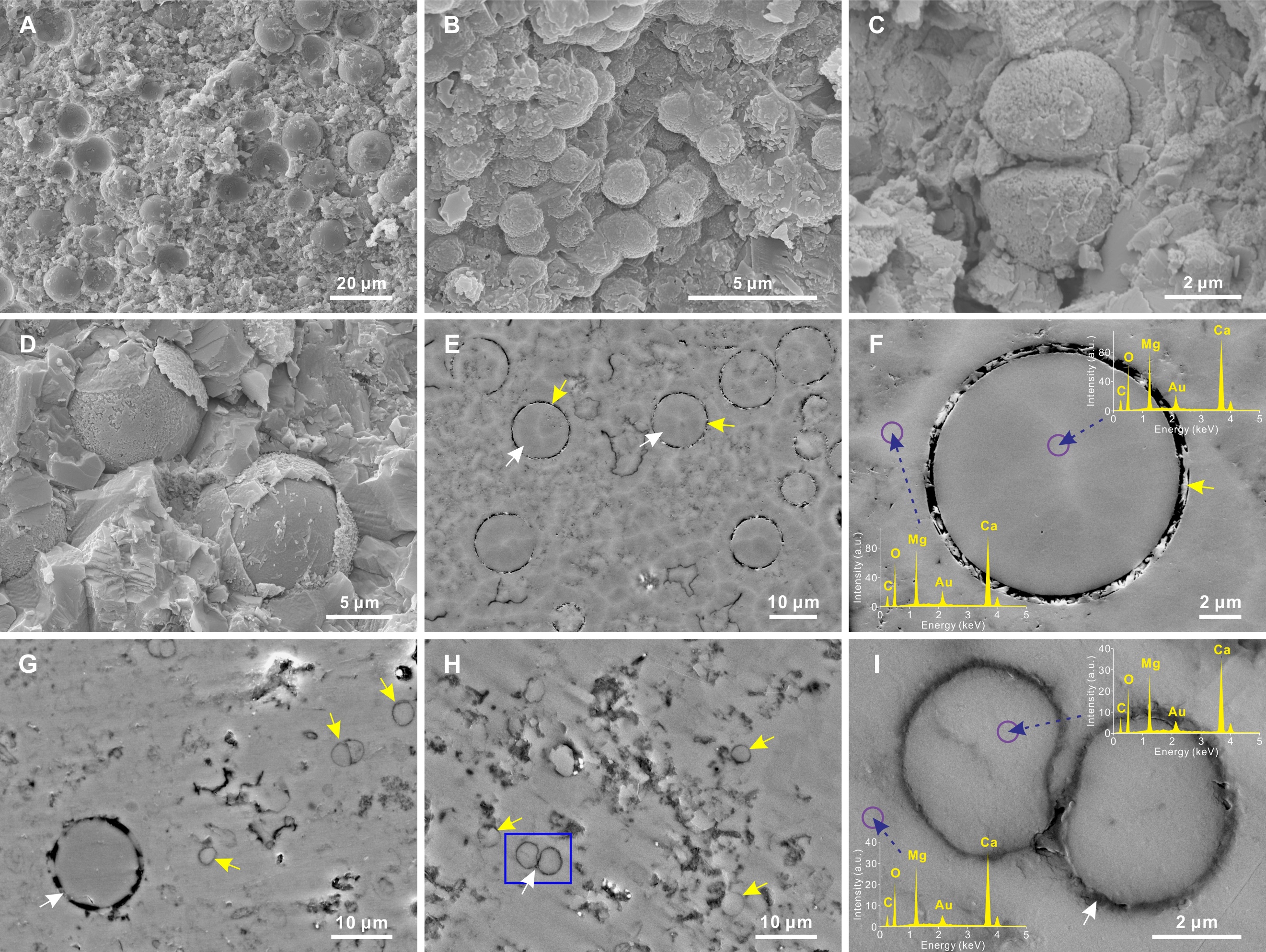 图1 自生白云岩中矿化的球状产甲烷古菌