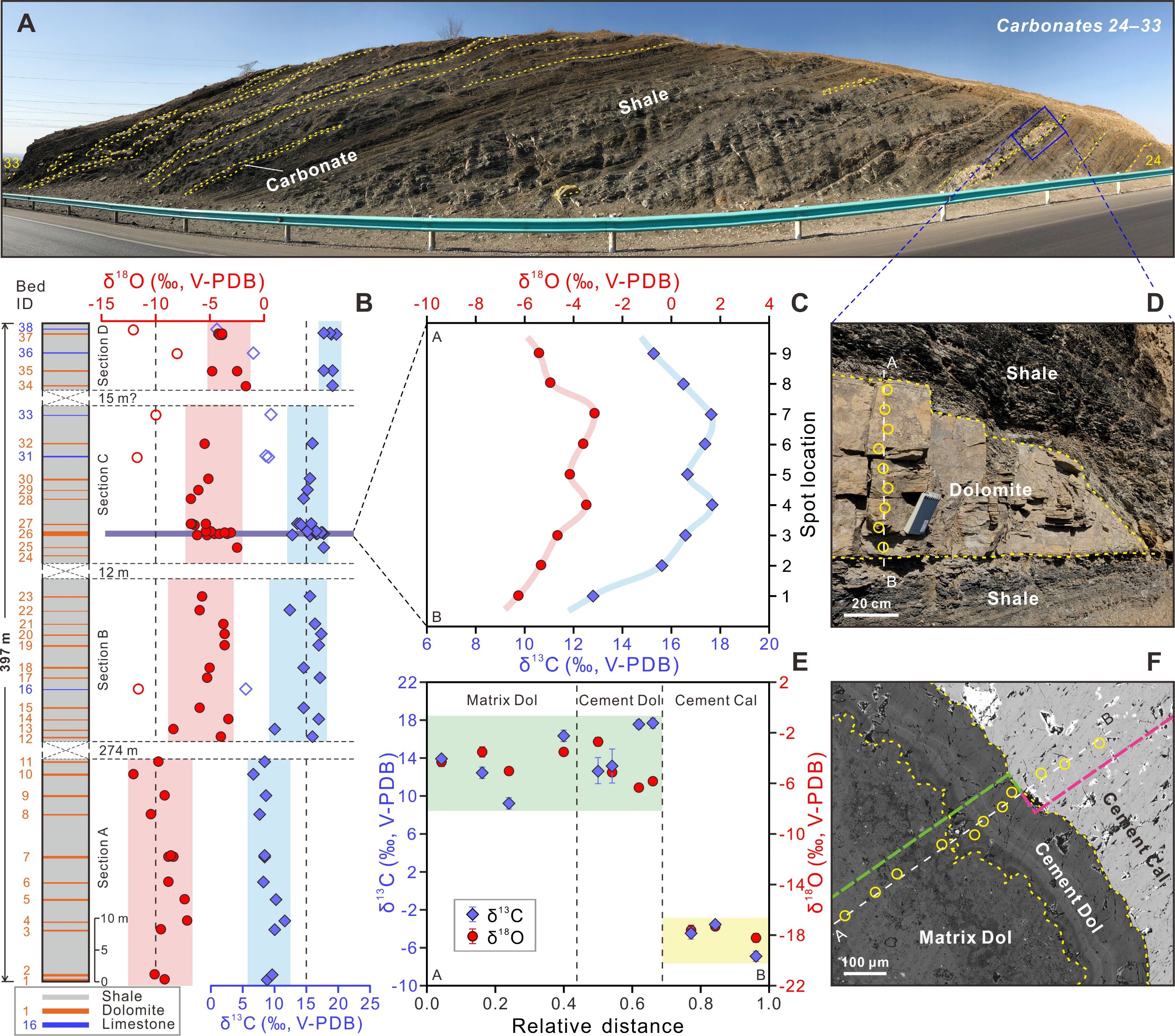 图2 与微生物产甲烷作用密切相关的自生白云岩及其碳-氧同位素组成