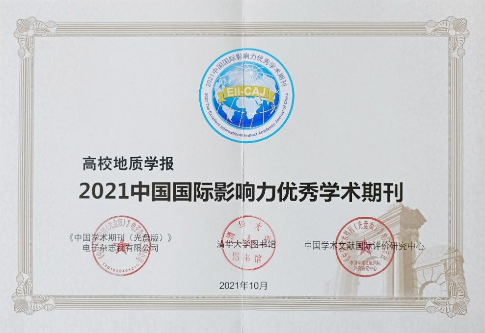 中国学术期刊影响因子年报》(2021版)于近日发布,在此次中国国际影响力的学术期刊遴选中,经过多项学术指标的综合评定,《高校地质学报》荣获了“2021中国国际影响力优秀学术期刊”称号。