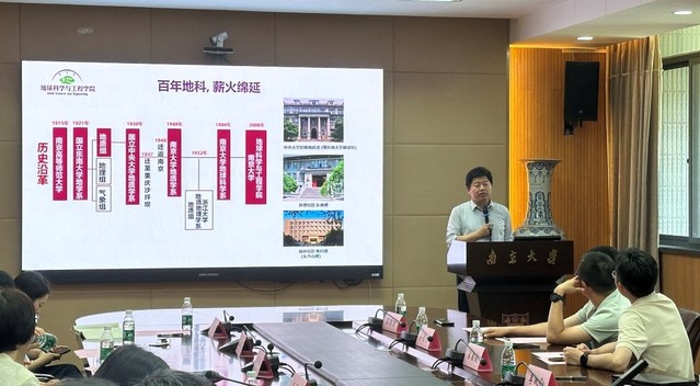 张志飞主任介绍了西北大学地质学系的学科发展历史和传承、拔尖创新人才培养等相关工作,他着重从培养机制、实践体系等方面分享了西北大学地质学拔尖基地创新人才培养的特色经验做法,希望与南大地科院在人才培养、科学研究等方面开展更多交流合作。