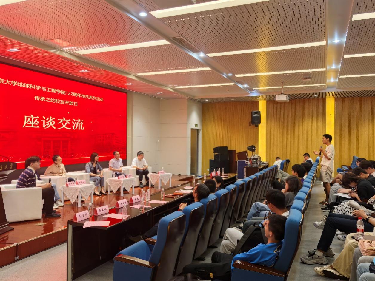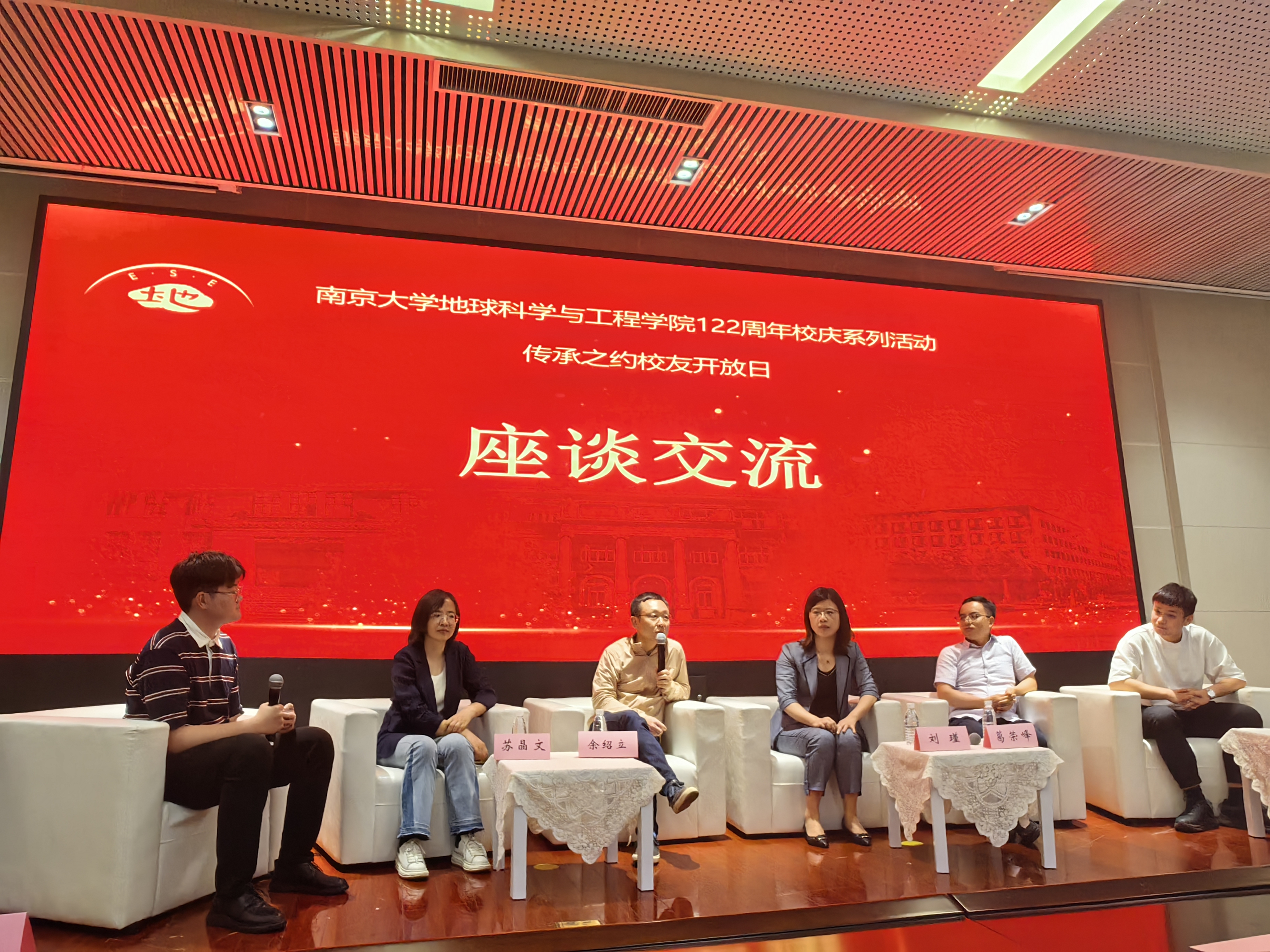 在304永利集团官网入口122周年校庆之际,为落实“奋进行动”实施方案,整合育人资源、助力人才培养,304永利集团官网入口开展了“传承之约”校友开放日交流活动。5月22日下午,学院邀请97级苏晶文、99级余绍立、02级刘瑾、04级葛荣峰及10级骆晓伟校友和老师返校与学院青年师生亲切交流,通过单独咨询、集体座谈的形式,追溯校园点滴、畅谈生涯体会。304永利集团官网入口学生就业指导中心副主任唐健、西北大学地质系党委副书记李政伦、西北大学地质系副主任王建强、学院党委书记董婷、党委副书记毛予倩及相关师生出席座谈会。