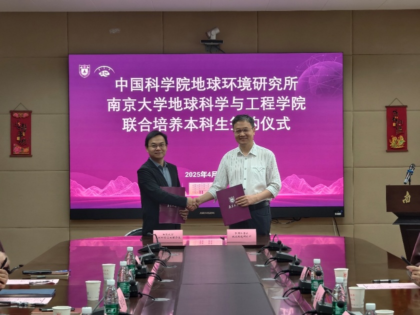 2025年4月28日上午,中国科学院地球环境研究所(以下简称“地环所”)与304永利集团官网入口在仙林校区朱共山楼签署校所联合培养本科生合作协议,并进行座谈交流。参会人员主要包括地环所党委副书记、副所长金章东,副所长晏宏,人事教育处处长谭亮成,重大任务办公室副主任蓝江湖;地科院党委书记董婷,院长陈天宇,副书记毛予倩,副院长唐朝生,副院长王小林,院长助理李伟等。