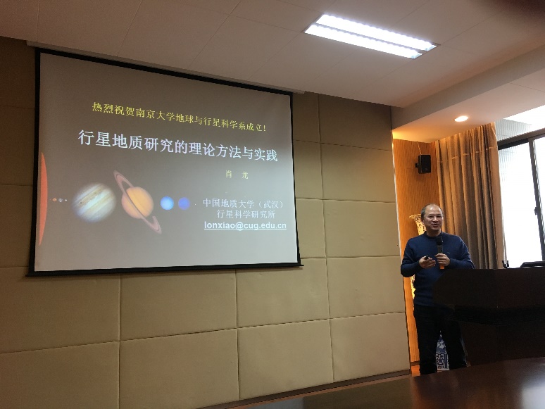 揭牌仪式后,举行了行星科学发展研讨会。中科院地质与地球物理研究所林杨挺研究员和中国地质大学(武汉)肖龙教授分别作了“发展行星科学是我们的使命”和“行星地质研究的理论方法与实践”的报告,并与相关师生对深空探测认证和行星科学研究的相关问题进行了热烈交流。研讨会由李伟强教授主持。