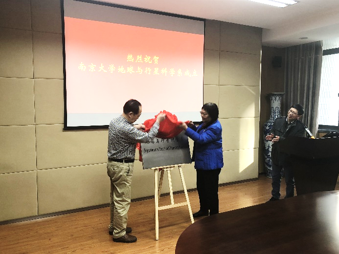 安芷生院士与许志琴院士为地球与行星科学系揭牌(刘春副教授摄)