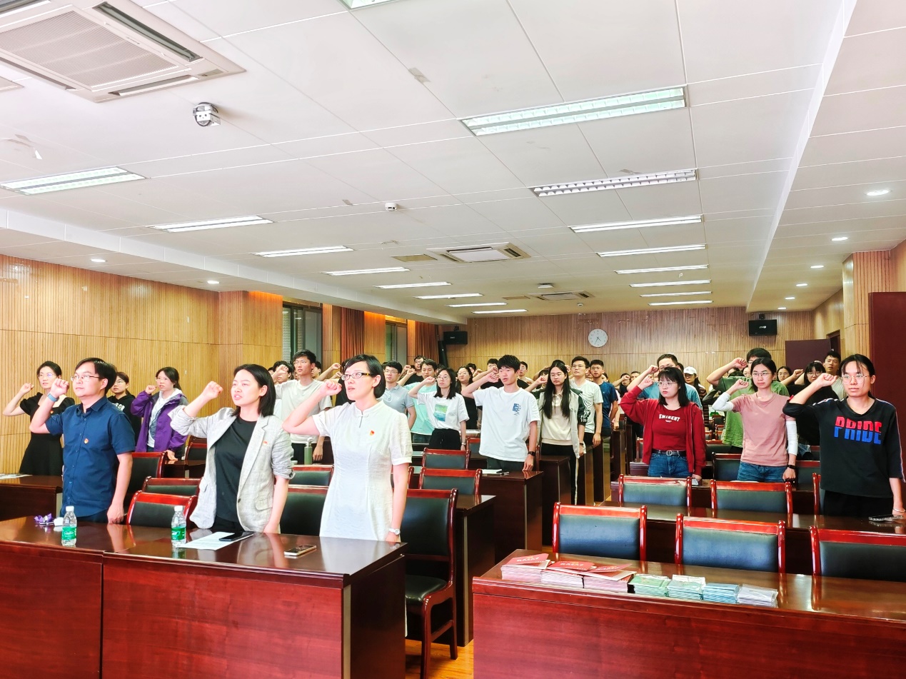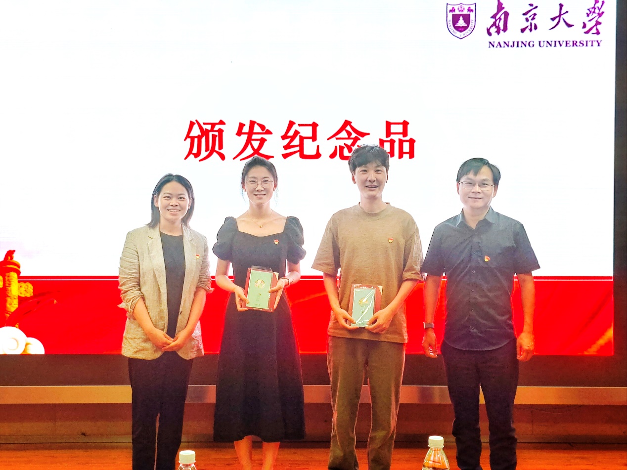 会议最后,陈天宇老师与陈昕老师共同为毕业生党员颁发纪念品,全体参会人员在主持人谷英东领誓下重温入党誓词,会议圆满结束。
