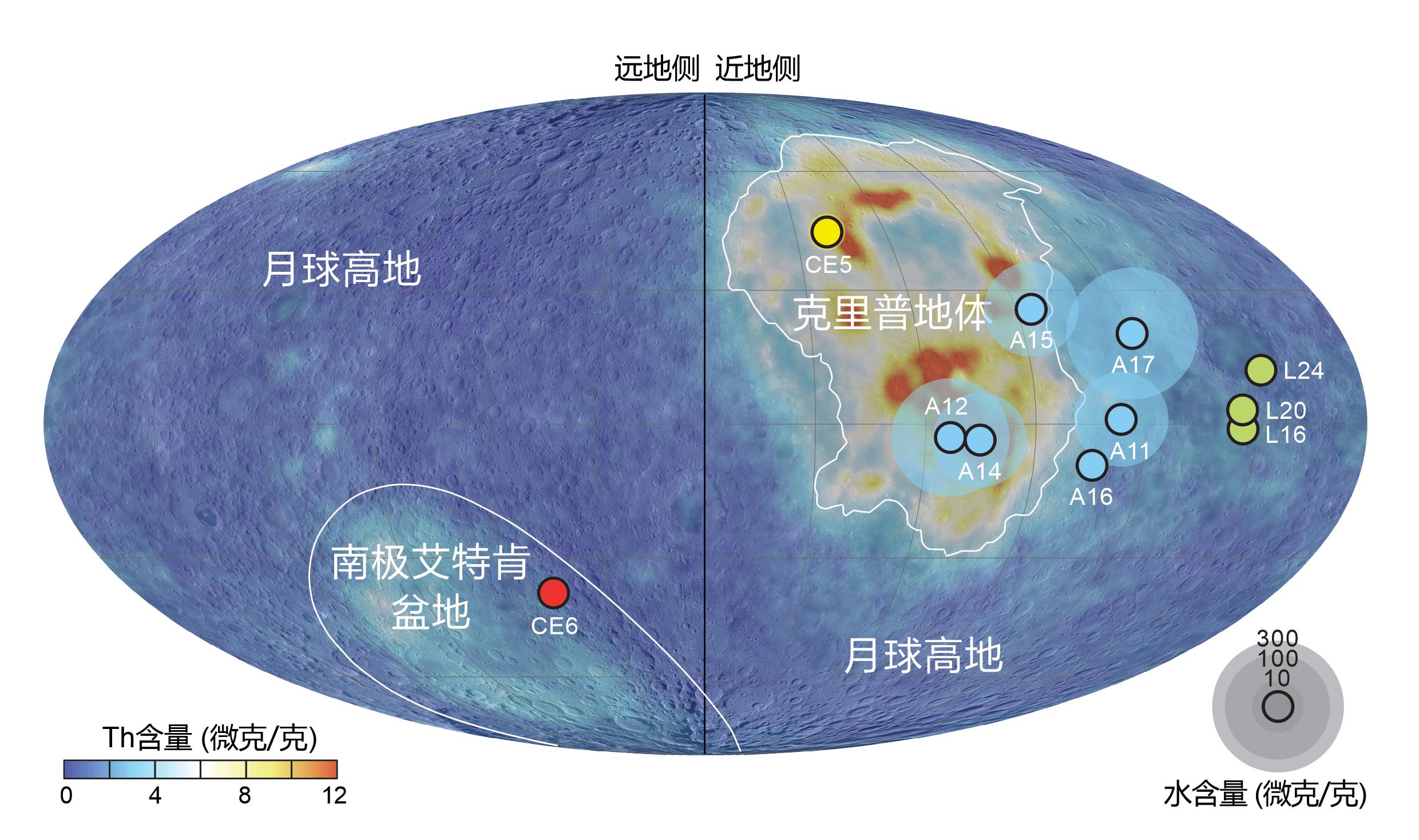 月幔水含量在揭示月球起源、岩浆洋固化模式、后续岩浆活动等方面具有重要科学价值。在上世纪美国阿波罗探月任务时期,受限于当时分析技术的空间分辨率和检测限,月球被认为是“干燥”的——月幔极度亏损结构水和其他挥发分组成。然而最近二十年得益于微区测试仪器的技术进步,研究人员发现部分阿波罗样品可能指示了很“湿”的月球内部——水含量与地幔相当甚至高于地幔的平均值。月球内部的水和挥发分含量以及分布再次成为争议问题。然而,现有的月球样品全部来自于月球正面,人们对月球背面月幔水含量的认识尚属空白(图1)。我国嫦娥六号任务从月球南极艾特肯盆地返回了第一份月壤样品,为揭示正背面月幔的水含量分布特征提供了重要机遇。