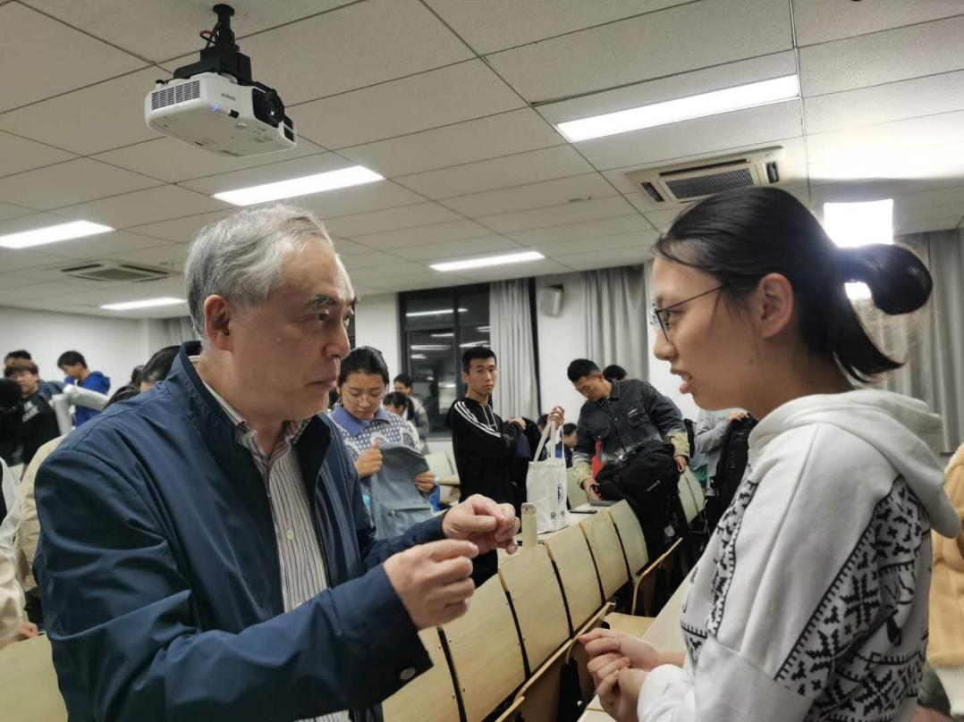 最后陈院士勉励同学们好好学习,做新时代的主人,为建设宜居地球、实现我国的绿色发展和兑现碳中和目标贡献自己的力量。同学们对本课程表现出了极大的兴趣。课后仍然热情高涨的讨论更多的全球变化科学问题。