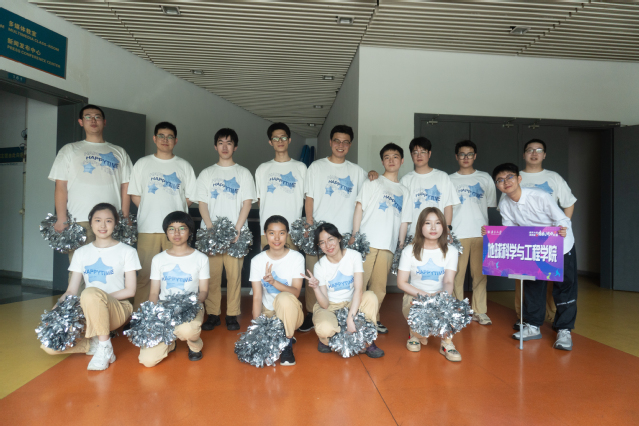 随着激昂的音乐响起,各队伍创意十足的入场式为大赛拉开序幕。304永利集团官网入口代表队身着统一印有字样“HAPPY TIME”白色T恤,手持银色花球,以整齐的步伐和饱满的精神亮相,展现出地科学子的团结与朝气。