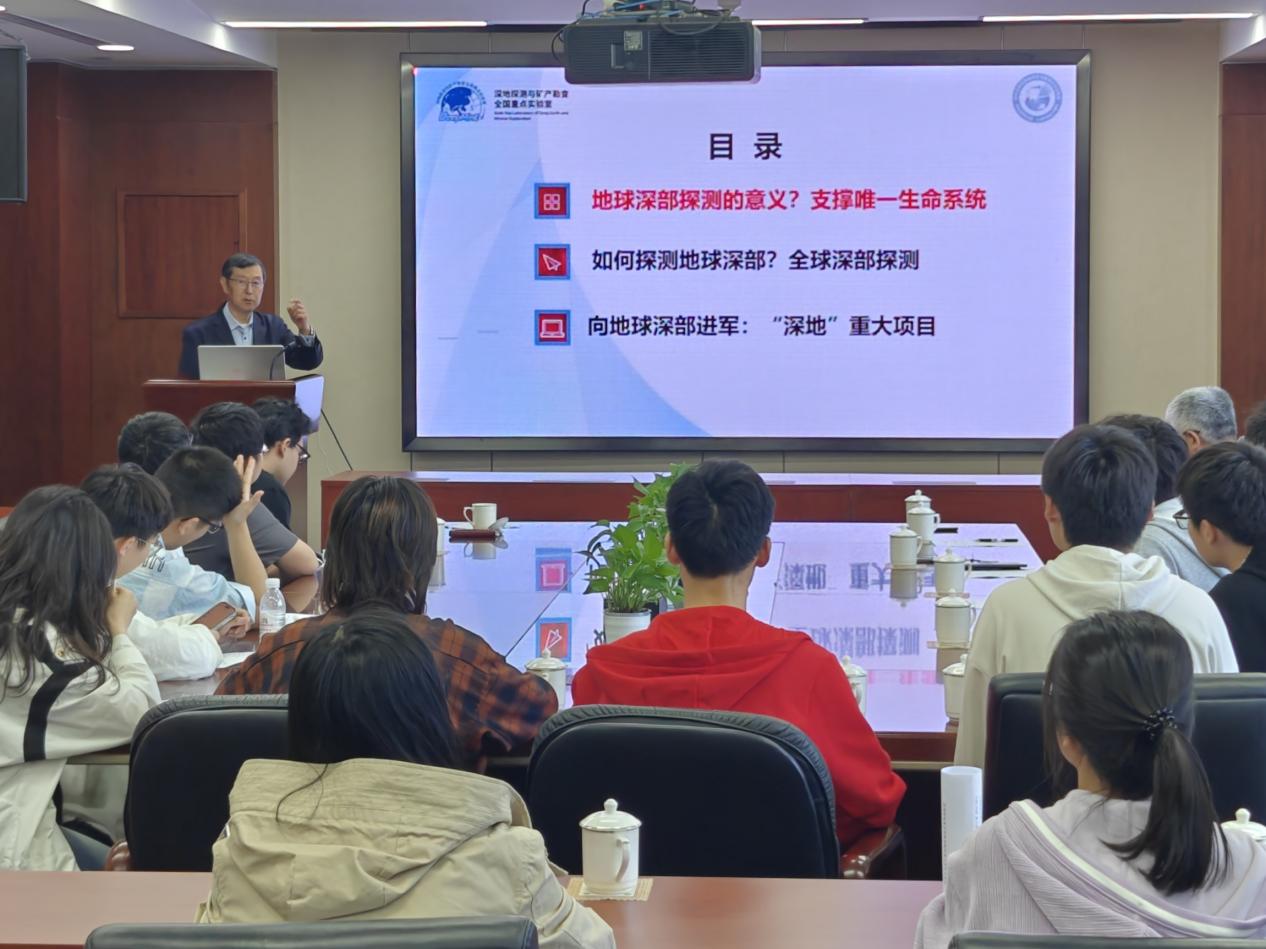 17号上午,同学们走进本次北京之行的第一站:中国地质科学院深地探测与矿产勘查全国重点实验室。永利集团官网87级本科校友曾令森研究员、深地所的王晨副研究员带领同学们前往北京离子探针中心参观离子探针实验室,讲解了离子探针的工作原理以及目前的研究成果。随后同学们乘车来到中国地质科学院深地探测与矿产勘查全国重点实验室,在董树文教授带领下,参观深地探测展览,并开展座谈交流会,董树文教授和曾令森研究员为同学们带来精彩报告,分别讲解了“地球奥秘与深地探测”及“我为何走进青藏高原?”。