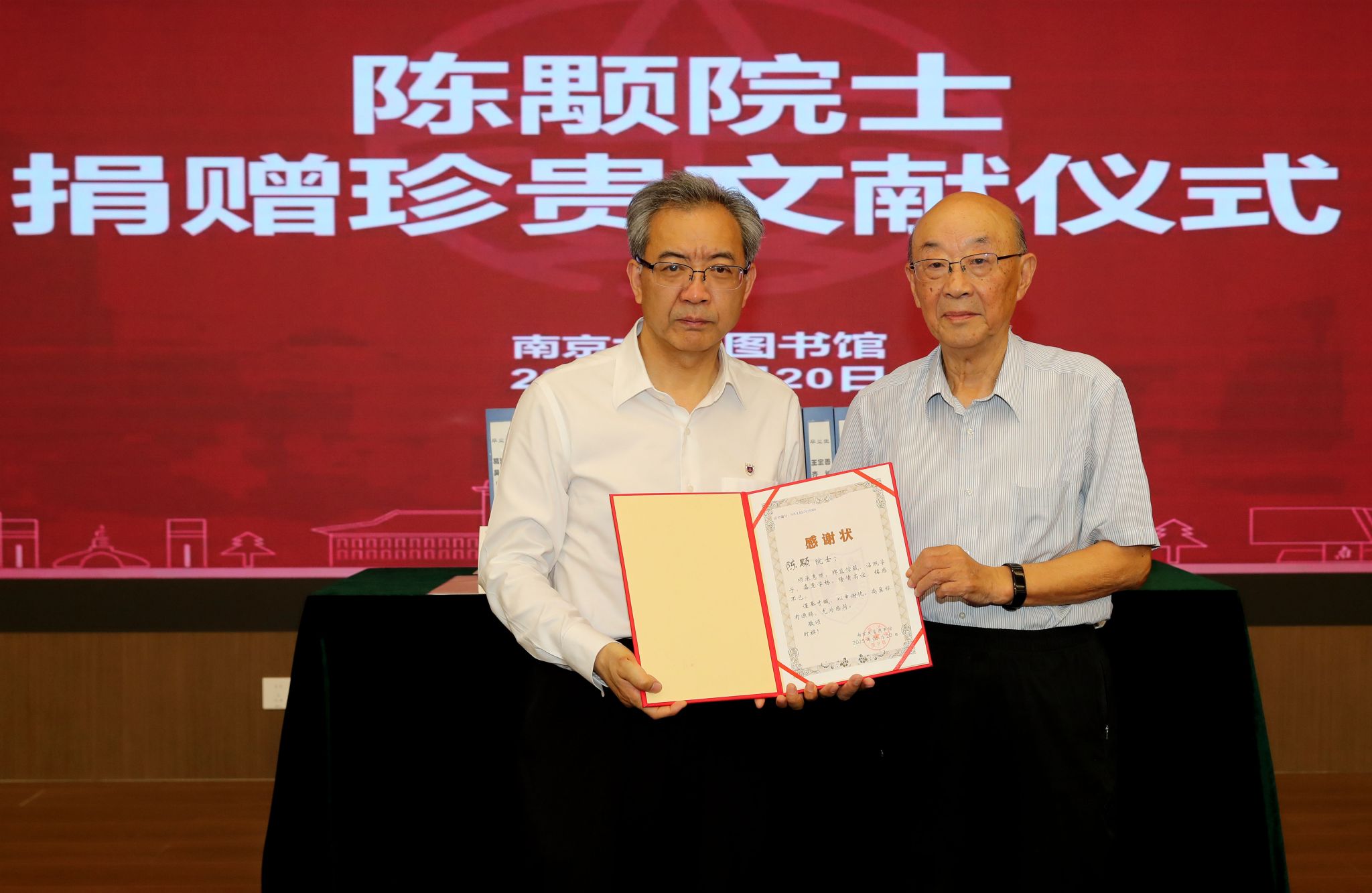 2025年5月20日,304永利集团官网入口在仙林校区图书馆举行陈颙院士捐赠珍贵文献仪式。304永利集团官网入口校长、中国科学院院士谈哲敏,304永利集团官网入口教授、中国科学院院士陈颙出席仪式。