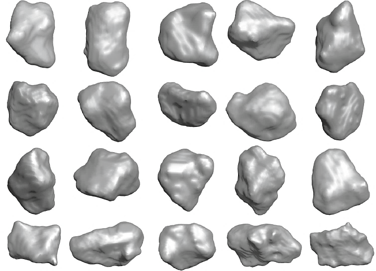 砂土由细小的岩石或矿物碎屑所组成,它们广泛分布于地球表层。砂土地层是人类工程基础设施主要的地基持力层;含水层砂粒间孔隙网络是浅层地下水的赋存空间与运移通道;松散砂粒沉积、压实并胶结为砂岩的过程中,其粒间孔隙网络内可储集丰富的油、气资源。离散元等数值方法是深入理解砂土物理、力学性质的重要手段。在以往研究中,通常采用规则的球体或椭球体作为复杂砂粒形态的简化表征,这可能导致对砂土物理、力学行为理解的偏差。显微CT扫描与三维重建技术是获取砂粒形态的有效手段,但受限于扫描时间与成本,难以获得足够多数量的数字砂粒用于砂土地层重建。