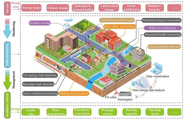 摘要:In an era marked by escalating climate change and urban vulnerability, enhancing the resilience of infrastructure and communities has become critical. Advanced monitoring technologies are vital for providing real-time data to assess and strengthen resilience, enabling proactive risk management and sustainable development. In this paper, a real-time distributed acoustic sensing (DAS) system was deployed at Nanjing University Xianlin Campus, Nanjing, China, utilizing a 3.8-km-long underground fiber-optic cable array. Continuous data collection has been conducted since February 2023. The effectiveness of the monitoring system in dynamically assessing and strengthening campus resilience is investigated. By analyzing power spectral density fluctuations and spatiotemporal correlations in DAS data, this study captures variations in campus activity patterns across different functional zones and time periods. The results demonstrate that DAS can effectively monitor human and environmental dynamics in real-time, providing data-driven insights for optimizing traffic management, resource allocation, and facility operations. Furthermore, the integration of DAS with the adaptive cycle framework enhances campus resilience during exploitation, conservation, release, and reorganization stages. This work validates the potential of DAS as a powerful tool for building resilient and sustainable urban environments. Its cost-effectiveness and high-resolution monitoring capabilities make it a promising solution for future urban development and resilience planning.