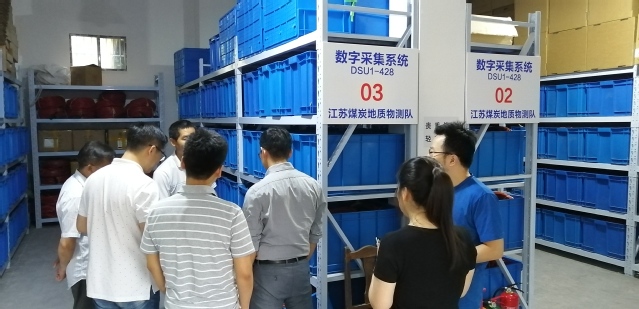 会后,江苏煤炭物测队设备科姚月成带领永利集团官网阮友谊一行参观勘探设备。