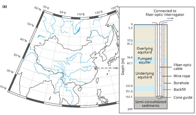 Fiber‐optic sensing is emerging as a superior means for distributed strain sensing of the subsurface. The ability of an embedded fiber‐optic cable to capture accurate strain profiles depends on the degree of rigid mechanical coupling between the ground and the cable. However, a current challenge in this field is to determine the actual level of ground deformation from strain signatures sensed by the cable deployed in the subsurface; addressing this issue has been hampered by the lack of suitable theoretical methods. Here we propose a two‐step ground‐cable coupling evaluation procedure, whereby we develop analytical formulations to quantify the interaction and interface shear transfer of a ground‐borehole‐cable system. We constrain key model parameters using a data set acquired with a fiber optics‐instrumented borehole for monitoring groundwater‐related sediment compaction. Extensive parametric analyses reveal that increasing the backfill modulus and cable gauge length or decreasing the borehole radius and cable stiffness can improve the quality of strain transferred to the cable from the ground; the effect of ground properties is comparably insignificant. Further, we develop design charts and tables at designated transfer thresholds to facilitate the development and field deployment of fiber sensing elements. Taken together, the theoretical quantification of ground‐cable coupling should improve the state‐of‐the‐art performance of distributed fiber‐optic strain sensing for subsurface ground movements detection and monitoring.
