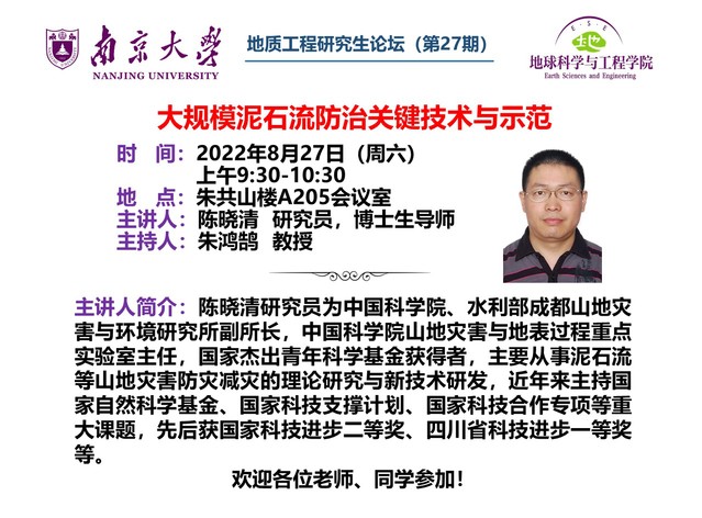 2022-8-26 中科院山地所陈晓清研究员报告:大规模泥石流防治关键技术与示范