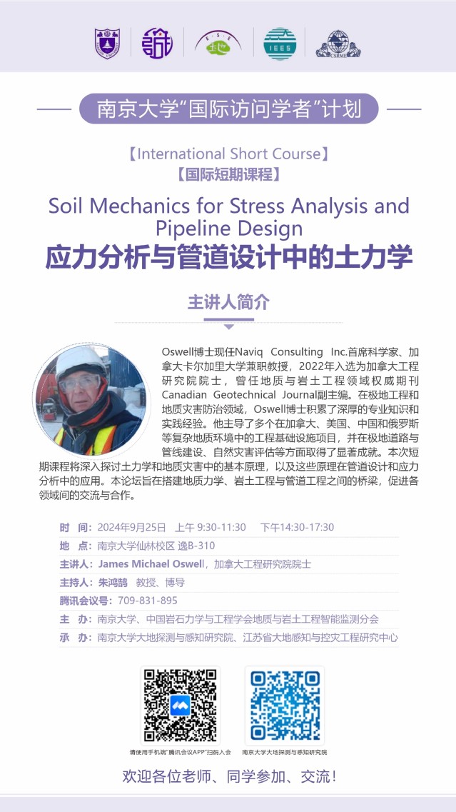 2024-9-25 J. Oswell院士:【国际短期课程】应力分析与管道设计中的土力学