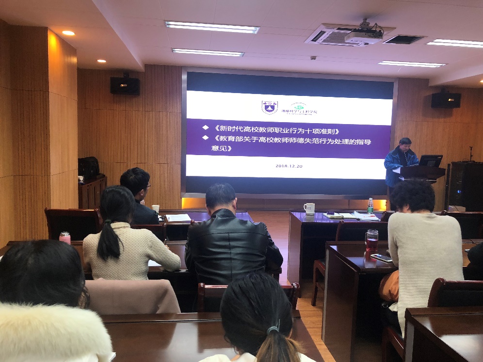 2018年12日20日下午4点,地科院召开学院师德师风教育警示大会,会议由党委书记王唯主持。