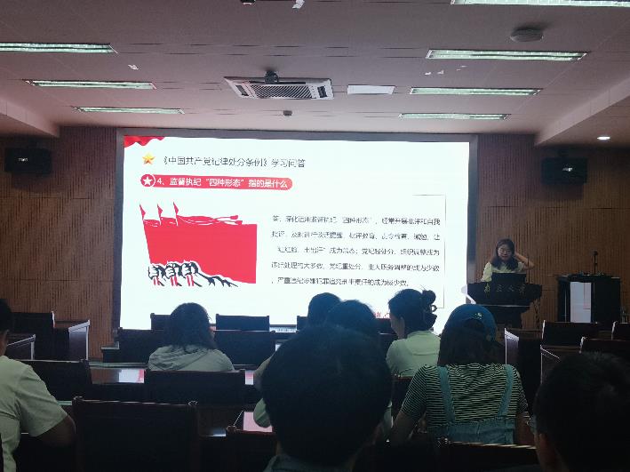 陈婷婷首先带领大家回顾了《中国共产党纪律处分条例》的修订历程,自1997年首次发布以来,条例经历了多次修订,每一次修订都体现了党对纪律建设的高度重视和与时俱进的精神。最新版条例更加突出政治纪律和政治规矩,细化了违规违纪行为的具体情形,为党员行为划定了明确界限,是新时代加强党的纪律建设的重要遵循。