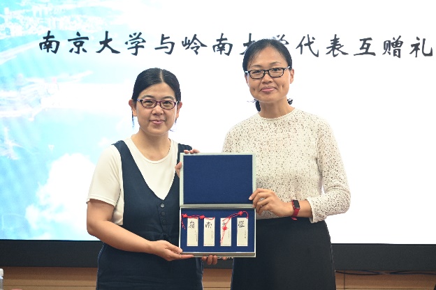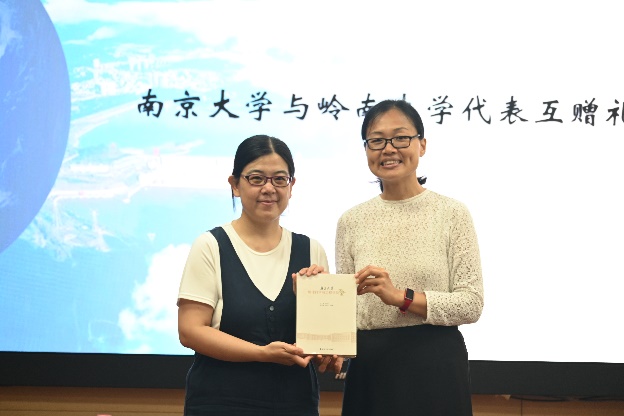最后,史宇坤老师再次强调了地球科学、人文科学、社会科学相结合的重要意义,对岭南大学同学们积极活跃的表现表示期待,并与香港岭南大学领队的耿红燕老师互赠了礼物。