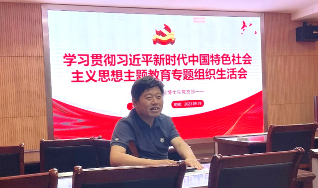 会议的第一项议程为支委成员带领全体同志集中学习相关文件精神,认真学习领会习近平总书记的一系列重要思想,为后续议程打牢思想基础。首先由支部书记张猛龙同志领学习近平总书记关于党的建设的系列重要思想。张猛龙同志从这一系列重要思想的形成背景讲起,随后具体讲解了全国组织工作会议上正式提出和系统阐述的“十三个坚持”内容,并总结了其重要意义。而后由支部宣传委员王敬朝同志领学习近平总书记关于以学铸魂、以学增智、以学正风、以学促干等重要论述,他首先讲解了主题教育活动的根本任务,并随后以习近平总书记在四地考察调研时的重要讲话对四项内容进行展开介绍。最后由支部组织委员李雯雯同志领学习近平总书记关于高等教育的重要讲话,这一讲话是习近平总书记于2016年12月全国高校思想政治工作会议上所作,就高校思想政治工作的根本问题、中心环节等关键问题进行阐述,明确了以立德树人作为教育的根本任务并贯穿学校教育和人才培养的各个环节,并就如何扎实办好中国特色社会主义高校的四个服务、四个坚持不懈、四个正确认识、三因三遵循等内容展开说明。