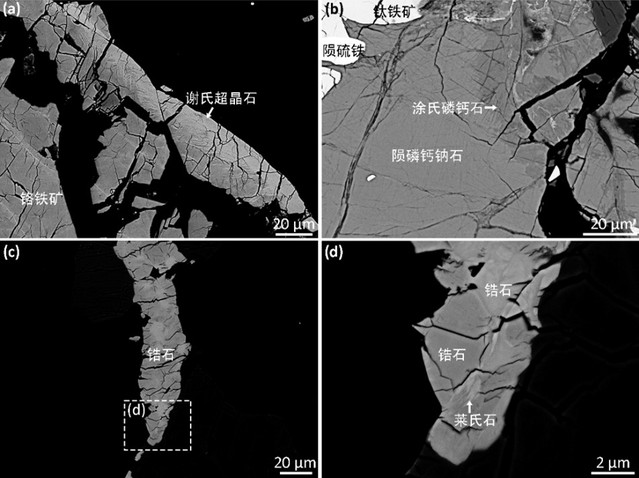 图4. NWA 8326中部分高压矿物的背散射电子像