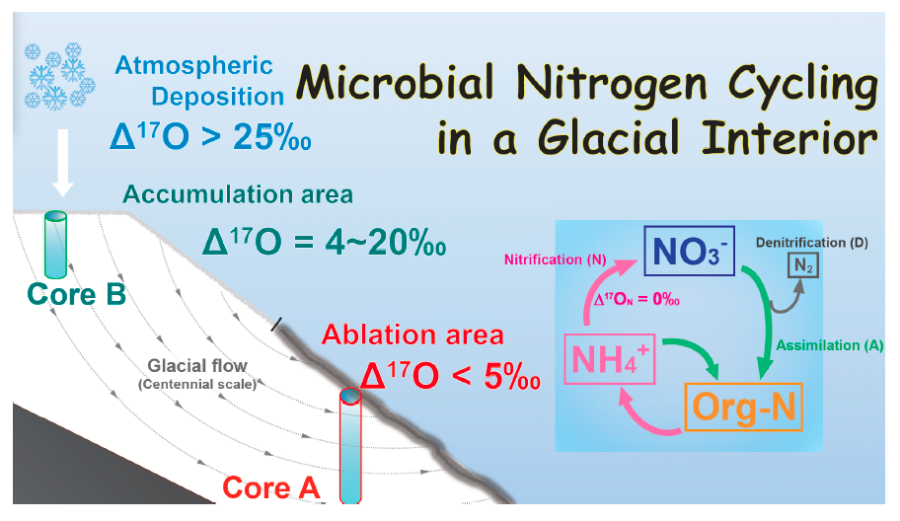 Hattori, S., Li, Z., Yoshida, N., Takeuchi, N. Isotopic Evidence for Microbial Nitrogen Cycling in a Glacier Interior of High-Mountain Asia, 2023, Environmental Science and Technology (published Sep. 25th, 2023)