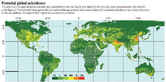地面沉降是由地下固体或流体开采引起的地面下沉现象,它是一种缓慢而渐进的地质灾害。尽管在过去的一个世纪里,有34个国家/地区报道了过量开采地下水引起的地面沉降区200多处,但实际发生地面沉降的区域远大于此。目前认识到地面沉降危害并采取缓解措施的只有少数国家/地区。为引起世界各国对地面沉降灾害的重视,论文建立了全球地面沉降数据库,构建了全球地面沉降模型,绘制了全球地面沉降发生概率分布图,预报了2040年全球受地面沉降灾害威胁的人口数、国家分布和经济损失等。