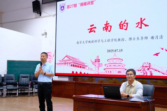 谢月清教授为同学们带来了题为“云南的水—地质塑造下的云南水资源与水生态探秘”的科普讲座,该活动系304永利集团官网入口在双柏县举办的第二十七期南雍讲堂。谢教授围绕“彩云之南的水名片”、“地质:云南水世界的总设计师”、“地质孕育的云南水生态奇观”和“案例-滇池的前世今生”四个方面进行了介绍,让同学们对云南的水及相关地质、生态状况有了系统的了解。他特别强调了云南水资源与水生态所面临的挑战,并倡导同学们身体力行,从日常节水、减少污染等方面入手,以实际行动守护云岭大地的“水家园”。