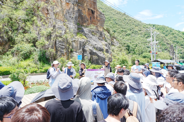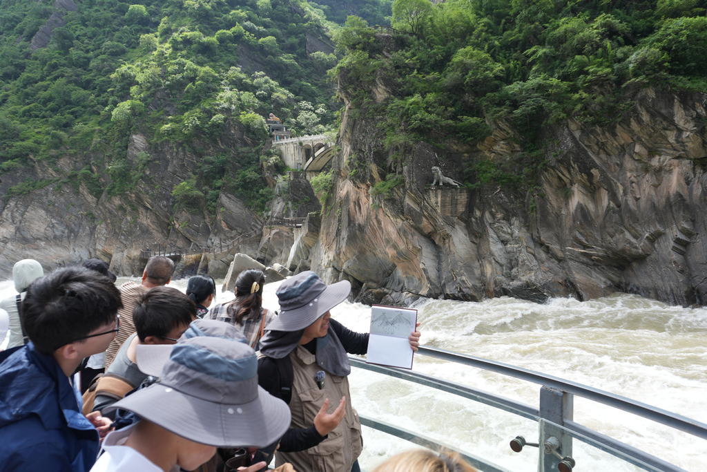 本次地质实习中,增加了一个最新的地质考察点-虎跳峡。在这里,同学们可以一览金沙江在深峡中奔涌腾跃的磅礴胜景,切身感受到水流变化、颗粒搬运能力改变、强烈构造抬升以及伴随的流体下蚀作用等地质规律。在陡峭的山路两侧,不时有精彩的地质现象让老师和同学们不禁驻足,有同学调侃这是“地科生独有的浪漫,看见精彩的地质现象就走不动路”。