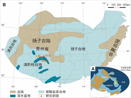 纳庆、纳饶及上隆剖面的地理位置与古地理背景