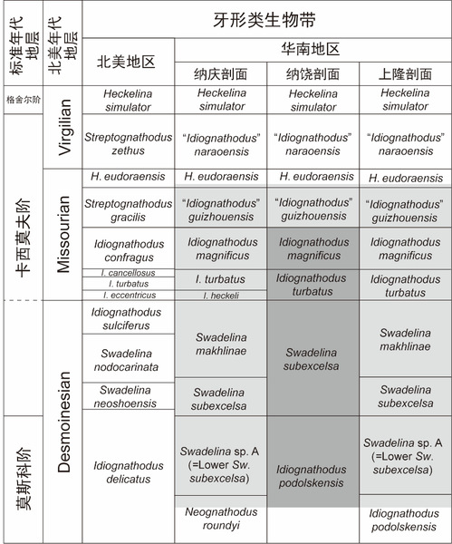 华南地区与北美地区莫斯科阶卡西莫夫阶牙形类生物地层对比
