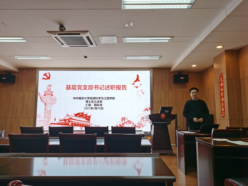 首先,郭琼泽同志代表支部委员会向全体支部党员作述职报告。报告内容包括支部在2020年度党员发展与预备党员转正的情况、支部开展各项主题党日活动的回顾、支部在过去一年取得成绩与仍然存在不足的总结,并对新一年的改进工作做了规划与展望。