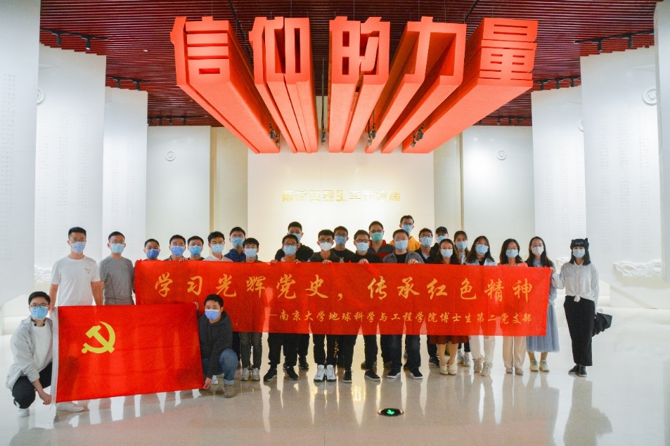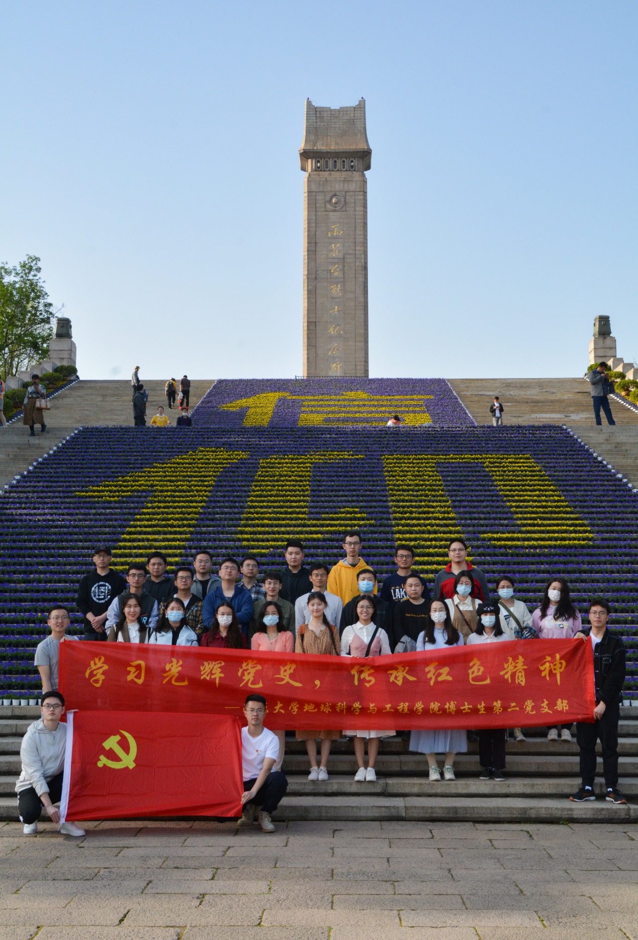 为贯彻落实校党委关于党史学习教育的相关要求,充分利用“红色”资源开展党史学习与主题党日活动,增强支部党员的凝聚力与初心,2021年3月28日,304永利集团官网入口博士生二支部33名党员一同前往南京市雨花台烈士陵园,祭奠革命英烈,学习光辉党史。