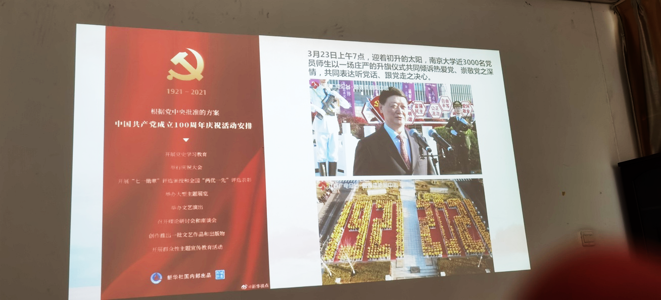 谢磊老师带领支部党员回顾了在新民主主义革命、社会主义革命和建设、改革开放和社会主义现代化建设和中国特色社会主义新时代等四个时期,中国共产党所做的救国大业、兴国大业、富国大业和强国大业四件大事,以及中国共产党百年辉煌历史的十三条宝贵经验。谢磊老师还用深入浅出的语言、文字和图片为大家剖析了“为何学党史”,也为“学党史”的方式和形式方面提出了多条建议。