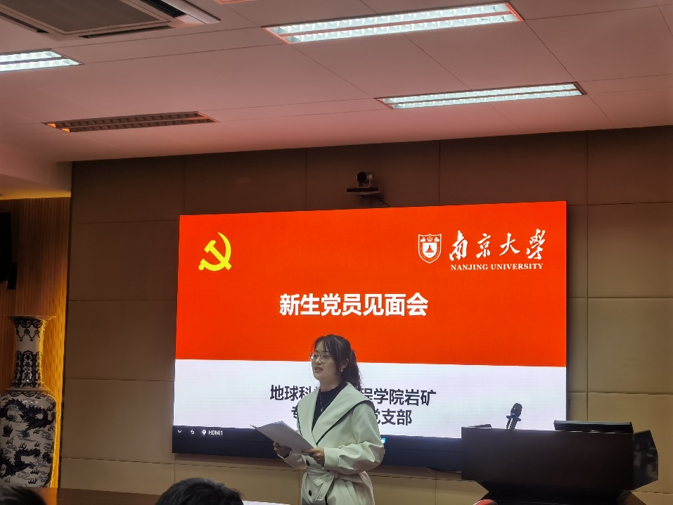 会议开始,党支部书记张慧丽同志对新生党员的加入表示热烈欢迎,并热情介绍了岩矿专业博士生党支部的基本情况。张慧丽同志对新生党员提出希望和要求,她强调,作为博士生党员,要在科研和思想上一起提升,严于律己,服务同学,勇做先锋,凝聚青春力量,为社会添砖加瓦。