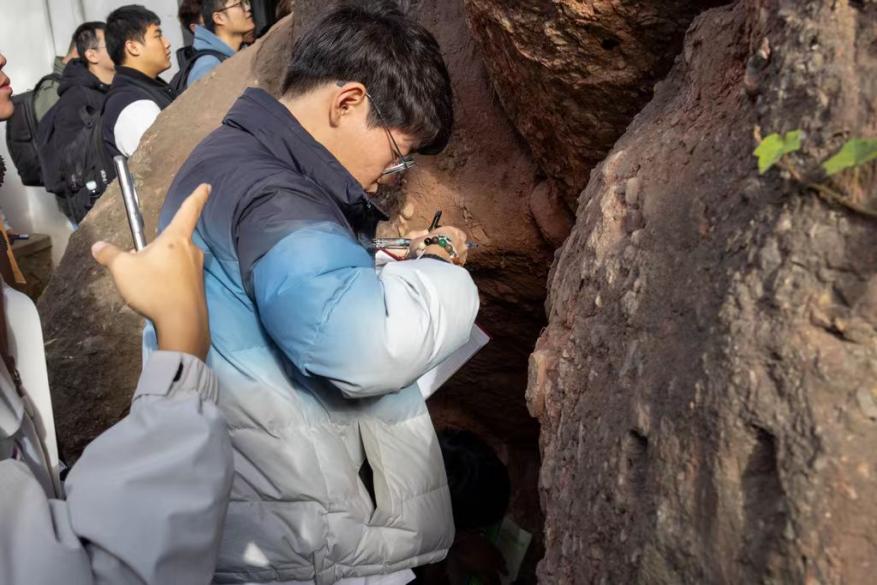 为深入学习贯彻习近平新时代中国特色社会主义思想,扎实推进“奋进行动”实施方案,弘扬红色基因,传承地质精神,2023年12月9日,304永利集团官网入口2023硕士生二支部在幕府山与燕子矶公园开展“赓续红色基因,传承地质精神”野外地质实习活动,将思政课堂融入教学实践中。304永利集团官网入口党员阎长虹教授主持此次活动,学院2023硕士生二支部党员及部分2023级研究生入党积极分子、团员参加。