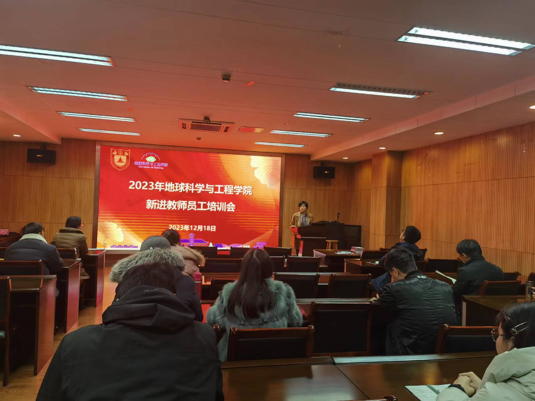 会议开始,董婷书记首先代表学院对新进教职工加入学院这个大家庭表示热烈的欢迎,同时她结合学院的发展变迁,从历史文化、党建工作、队伍建设、人才培养、科学研究等方面对学院整体情况进行了介绍,让大家了解到了地科院的百年奋进史。她同时提出,希望新入职教职工能够成为推动学院未来发展的新鲜血液,树立崇高的职业理想,牢记为党育人、为国育才的初心使命,把个人发展融入到学院的建设和发展之中,为学院未来发展做出贡献。