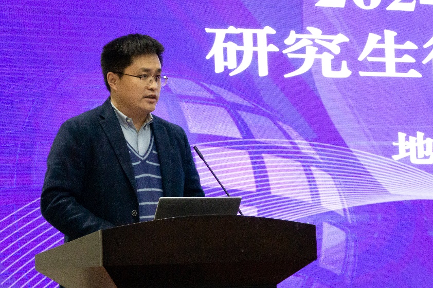 学院分管研究生工作的王小林副院长从学院研究生培养工作现状、年度工作进展以及面临的新形势和挑战三个方面作了报告。他首先介绍了学院研究生培养历史、培养方向、制度保障、导师队伍和研究生规模等;随后详细汇报了学院在研究生一流生源、卓越培养和质量保障等环节的主要举措和成效,并对研究生培养过程中的常见问题进行了提醒与针对性建议;最后,他汇报了学院研究生培养“创新提质工程”的由来,并结合在读研究生问卷调查结果,从研究生视角剖析了课程建设、考核评优、导学关系等方面的问题与挑战。他强调,导师在从入口到出口的全链条育人过程中,要坚持质量优先、因材施教、严控标准、注意工作边界,希望导师在师生交流、论文选题、培养指导、毕业就业等方面,用足够的关心和爱心落实立德树人根本任务,根据党和国家对研究生教育提出的新要求,以及当前研究生培养面临的新形势与新挑战,抓好全过程高质量育人,努力培养引领未来的地学栋梁人才。