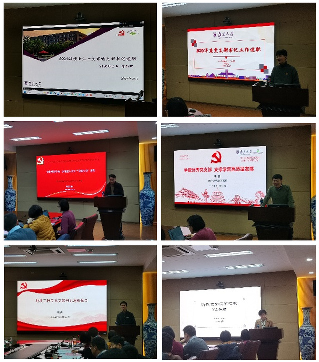 院党委董书记对各支部工作进行总结,她首先肯定了各支部在过去一年所做的工作,她指出,各支部在提升组织力、增强政治功能、助力中心工作、推进学院发展等发面都发挥了战斗堡垒作用。支部书记抓党建能够履职尽责,党员能够牢记第一身份、履行第一职责,发挥党员先锋模范作用。同时,董婷书记也指出学院党支部工作还需要进一步加强,主要体现在三个方面:第一,各支部在规范化、制度化建设的基础上还需要进一步加强特色化建设,支部的特色党日活动和党建工作中的地学特色品牌还不够突出;第二,在做实事、干业绩的基础之上,进一步加强党建工作的总结凝练,“说好、写好、做好”工作同步进行,继续加强党建宣传工作;第三,进一步加强学院各支部之间的联动与交流,互相学习、借鉴,从而促进各支部共同成长。