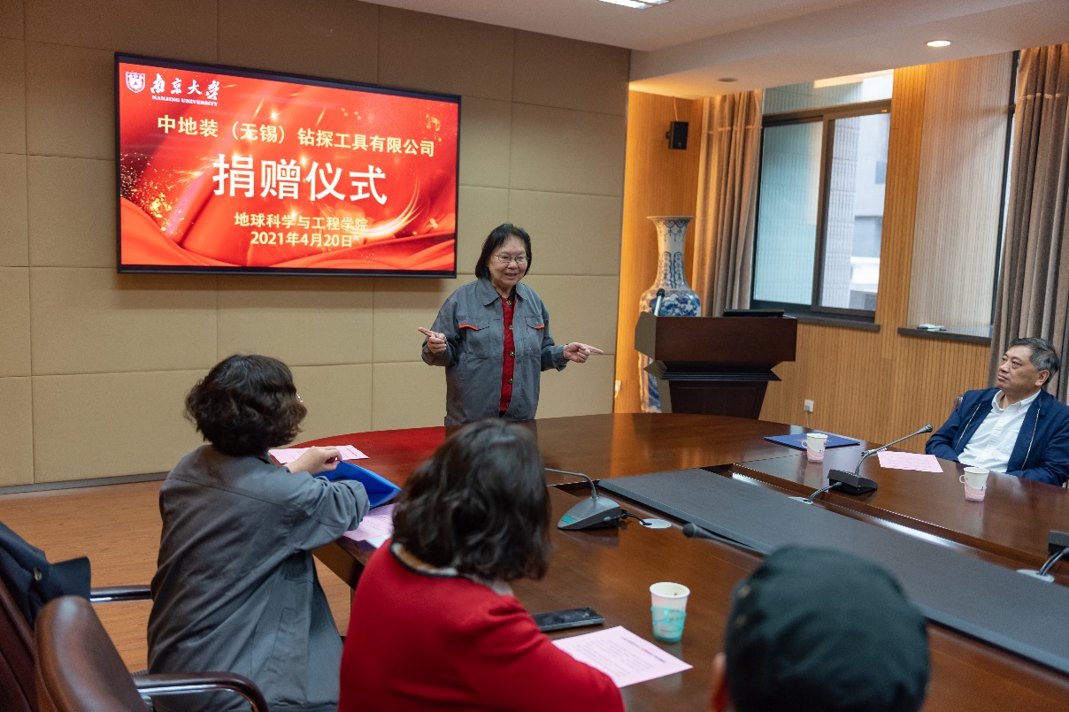为向公众普及科学钻探技术知识,中地装(无锡)钻探工具有限公司向“大陆科钻岩心馆”捐赠了一套共26件钻具工具。4月20日早上10点,捐赠仪式在朱共山楼205会议室举行。许志琴院士首先感谢中地装(无锡)钻探工具有限公司长期以来对大陆科学钻探事业的支持,甲基卡科钻项目在海拔4600米的高原实现了0钻井事故和98.5%的极高取心率,经过234天的艰苦奋战,终孔深度为3211.21米,中地装(无锡)钻探工具有限公司的高质量钻具发挥了重要作用。中地装(无锡)钻探工具有限公司邓红玲书记介绍了公司历史,表示很荣幸能为甲基卡科钻的施工和大陆科学钻探岩心馆的建设贡献一份力量。中地装(无锡)钻探工具有限公司建于1958年,现为中国地质装备集团有限公司直属企业,公司一直遵循产学研相结合,2011年认定为高新技术企业,近年来分别获得“国家科技进步二等奖”、 “国土资源部科学技术一等奖及二等奖”等荣誉,并获江苏省重大科技成果转化项目、江苏省“双创团队”和无锡市“顶尖人才”项目资金支持,是国内钻探工具专业生产领域的龙头企业。304永利集团官网入口院长王汝成教授向邓红玲书记授予捐赠证书,向中地装(无锡)钻探工具有限公司表达了诚挚的谢意,并建议双方建立长期合作关系,在通用地质装备、极端条件下的采样设备、高温高压仪器设备等方面开展合作交流。之后参与捐赠仪式的中国地质大学(武汉)张晓西教授,304永利集团官网入口杨经绥院士、舒良树教授、王勤教授、车旭东副教授等人纷纷发言,为“大陆科学钻探岩心馆”的建设献计献策。