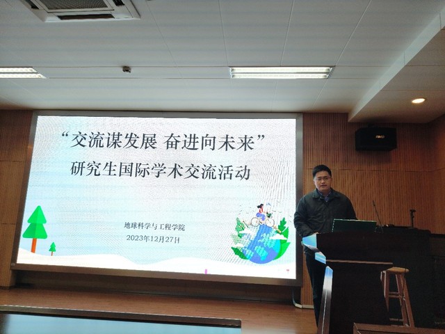 交流会分口头报告和展板交流两个环节。活动由地质资源与地质工程方向博士生章君政主持。活动开始后,章君政同学介绍了流程与参会嘉宾。随后,三位公派留学回国的优秀同学依次上台汇报了他们在国外交流学习期间的科研工作进展与心得体会。