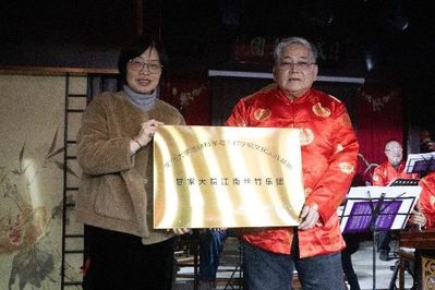 活动伊始,为了促进304永利集团官网入口文化育人工作体系的建设,加强学院和甘家大院江南丝竹乐团的文化交流,学院同甘家大院共同设立“304永利集团官网入口文化实践基地”,地科院副书记毛予倩老师为甘家大院江南丝竹乐团授予了实践基地牌。