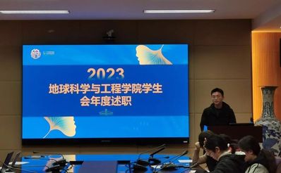 接下来,地科院学生会主席杨博进行年度述职。过去一年学生会组织了品味江南丝竹的系列文化活动,“我和我的野外记录本”经典故事寻访活动,第十七届地学文化节与地科环游记、荧光夜跑等活动。未来的工作中学生会将继续强化桥梁职能,深化思想引领,更好地领导与服务同学们。