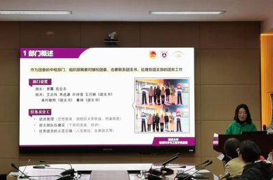团委组织部部长贾露进行述职汇报。组织部作为团委的中枢部门,既要对接校团委,也要联系团支书,处理各团支部的团务工作。过去一年里,组织部开展了多次院系层面的团日活动,如联合主题班团会议,实践育人成果汇报走进支部团日活动,同时结合团员们关心的就业、教育、志愿活动等问题,深入贴合青年学生普遍需求,带领团支部完成专题学习,学习覆盖率达到100%。另外,组织部还开展了团干部选拔与培训工作,完成春季和秋季积极分子推优工作,团骨班、青马工程和研骨班的选拔工作。