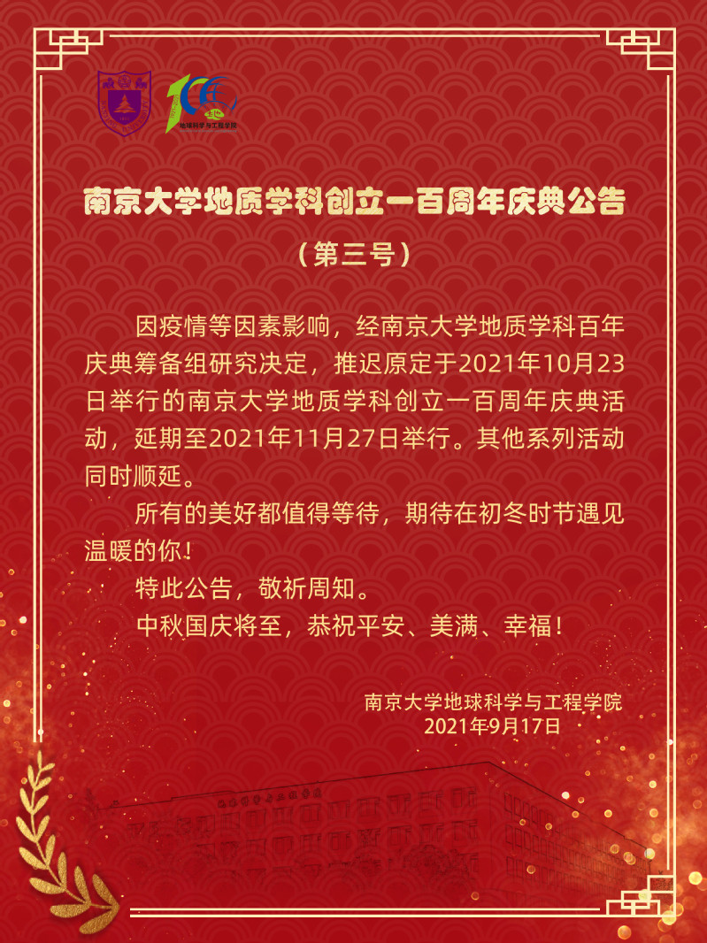 304永利集团官网入口地质学科创立一百周年庆典公告(第三号)