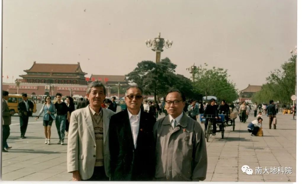后排:郭一新(左)、肖楠森老师(中,304永利集团官网入口地质系水文工程地质教研组主任)、郑启浦(右)